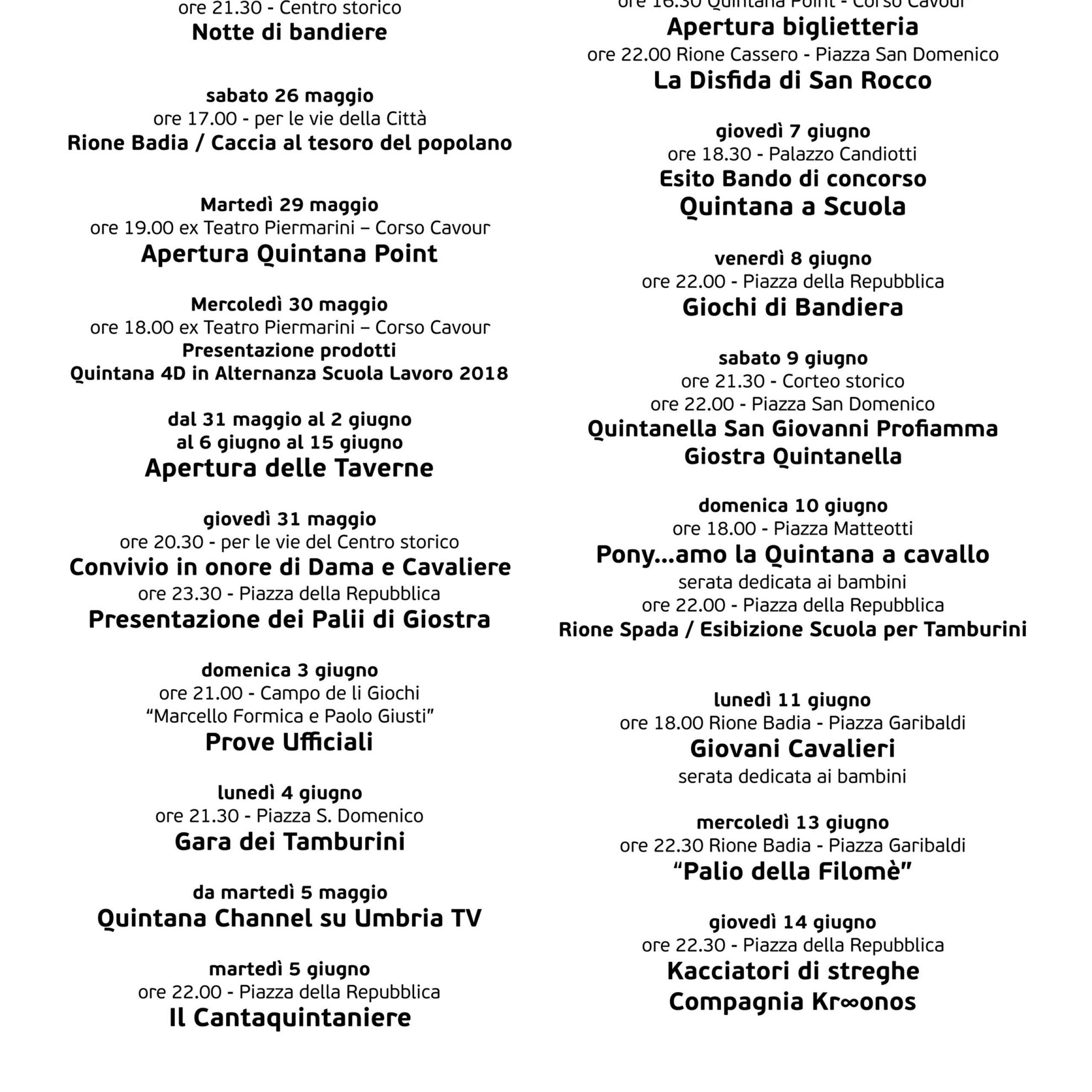 Siamo in attesa del programma per l’edizione del 2018 della Quintana di Foligno, vi terremo aggiornati!