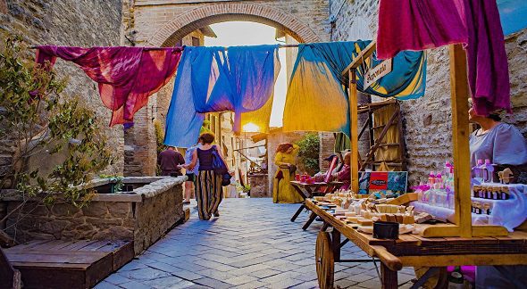 What are th best things to do in Bevagna in June? If you are so lucky to visit Bevagna in the last ten days of June you’ll come across one of the most beautiful historical events of Umbria: the Mercato delle Gaite. In this occasion, costumed characters revive ancient crafts along narrow streets and typical environments, with tasting of traditional medieval flavors and presentation of typical craft products.