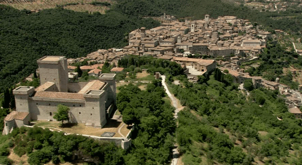 Percorrendo la Flaminia in direzione sud verso Narni, è possibile ammirare, in posizione dominante rispetto al borgo medievale, la Rocca Albornoz.