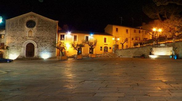 Porta Romana, del XVIII secolo, costituisce l’attuale ingresso al centro storico e si mostra subito in tutta la sua imponenza. La piazza principale, intitolata al Santo d’Assisi, è il cuore pulsante del paese e collega la parte più moderna rinascimentale al nucleo più antico, arroccato sulla sommità del colle. Si affaccia sull’omonima piazza la chiesa di San Francesco, eretta nel 1200 in stile gotico e caratterizzata da copertura a spiovente sostenuta da arcate in muratura con arco a sesto acuto. Raccolti al suo interno numerosi affreschi quattrocenteschi di scuola umbra.