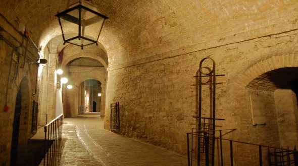 The interior of the Rocca Paolina is formed by the ancient streets and squares of medieval Perugia. The escalators built inside facilitate the visit and quickly connect the lower part of the city with Corso Vannucci.