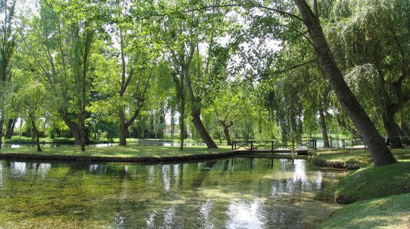The crystal clear water, fed by underground springs, is surrounded by a dense vegetation of weeping willows and poplars that give the environment a charming and romantic atmosphere.