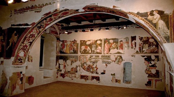 The testimony most important painting is made up of two cycles of frescoes from the first half of the fifteenth century in the Camera Pinta, an ancient private study of the pope or of his vicar, located on the main floor of the Tower teacher.